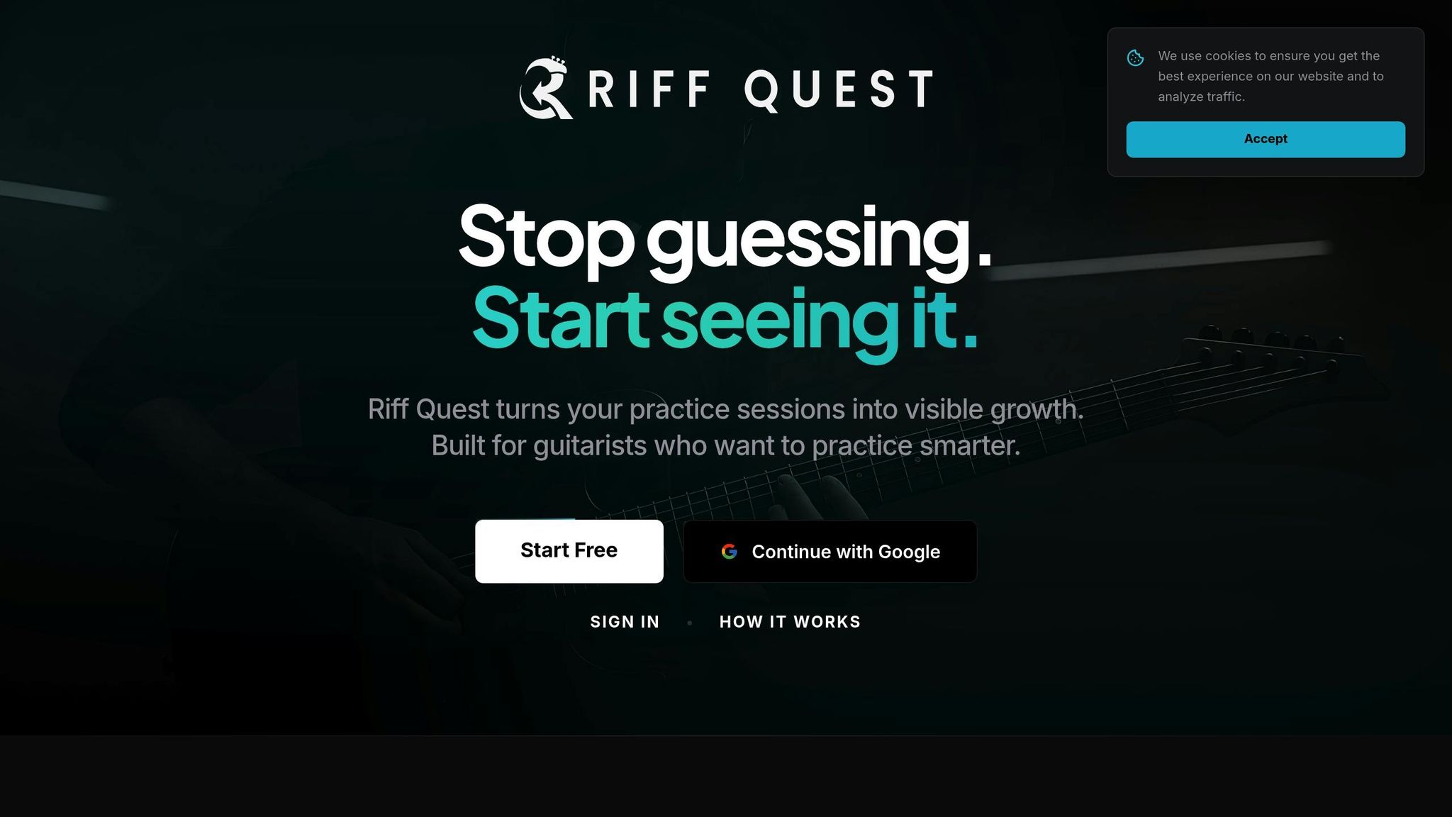 Keeping track of your progress is a great way to stay consistent with daily practice. Structured routines help build skills, but having clear metrics to measure growth can keep your motivation alive. Riff Quest offers a free platform where you can log practice sessions, monitor your progress, and stay engaged - no subscriptions, hidden fees, or credit cards involved. With over 600 guitarists already using the platform, it’s helping players turn their daily practice into measurable growth through detailed logs and visual tools [25].